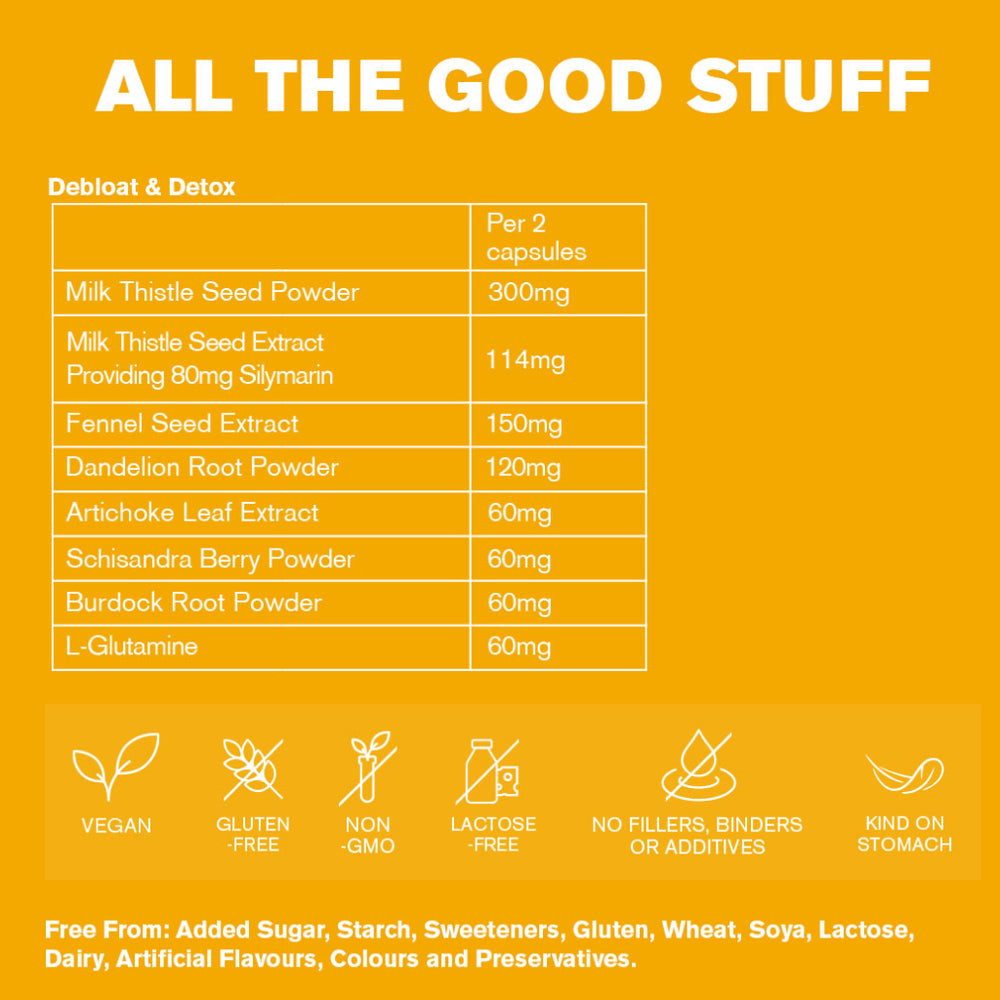 - 60 capsules of Debloat & Detox